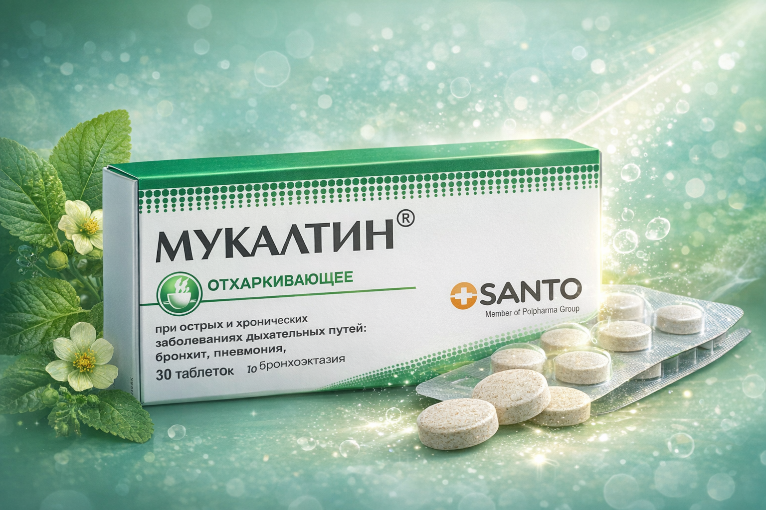 Мукалтин® — растительный препарат для симптоматического облегчения кашля. Содержит экстракт алтея лекарственного, способствует разжижению мокроты и облегчает её выведение, помогая снизить интенсивность кашля. Подходит для взрослых и детей, используется в составе комплексного подхода при заболеваниях дыхательных путей.